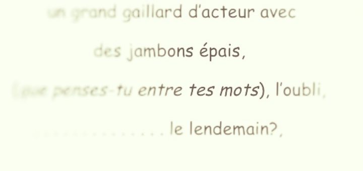 après une pièce de théâtre: L’acteur un grand gaillard d’acteur avec des jambons épais, (que penses-tu entre tes mots), l’oubli, . . . . . . . . . . . . . ....
