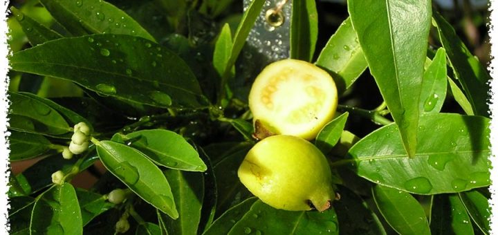 Fruit du goyavier de chine1 Petit fruit très savoureux, parfumé et très sucré (sur la photo, sur le feuillage d’un mandarinier). Un petit régal pour l’hiver. Fruits de mars: 6 mars 2008 15h45. Goyave...