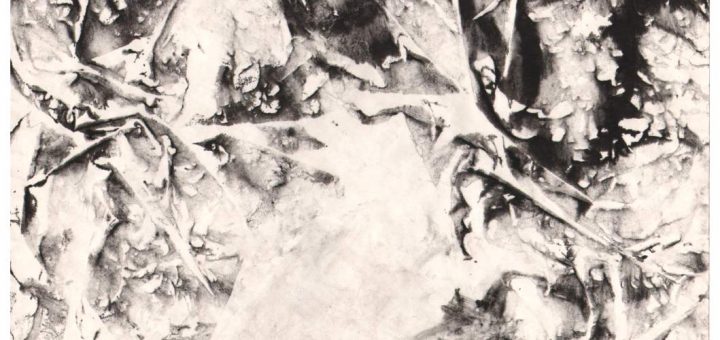 Epoustouflance, monotype à l’encre sur papier, 1996, 21/30 cm Marécages, monotype à l’encre sur papier, 1996, 21/30 cm, Monotype sur papier: empreinte d’animaux fossiles,méduses et crustacés, monotype à l’encre : au-delà des mots