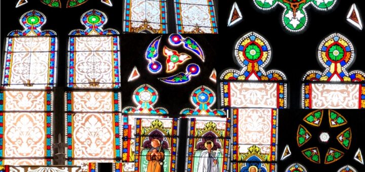 l’église de Châtel St-Denis, Chef d’Oeuvre du néo-gothique en Suisse, foisonnement des formes végétales, feuilles, fleurs, branchages, dans les vitraux, les chapiteaux, les escaliers et stalles! Vous pourrez-vous voir sur le site langages.ch quand...