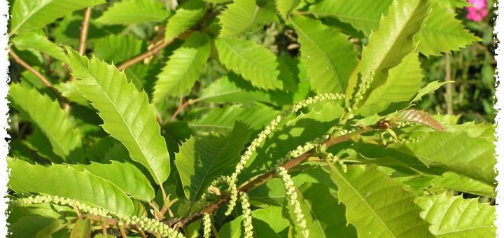 Fleurs de châtaigniers, mâles et femelles, Castanea sativa.