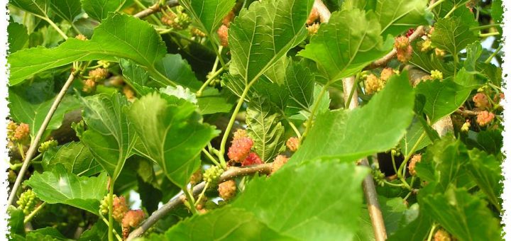 Fleurs – fruits, inflorescences fruitières du mûrier noir, morus nigra.