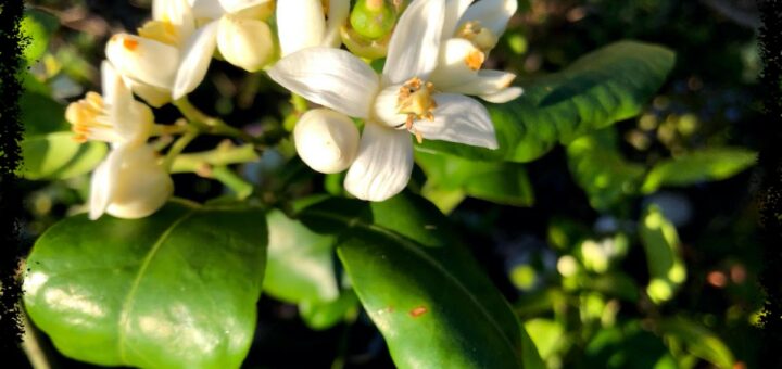 Feuilles d’agrumes dans l’orangerie avec des feuilles de Figuier de Barbarie, feuilles d’orangers.