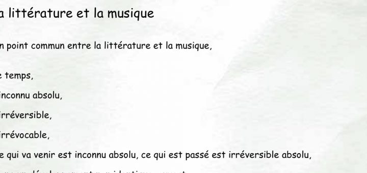 Mots en sons: la littérature et la musique un point commun entre la littérature et la musique, le temps, l’inconnu absolu, l’irréversible, l’irrévocable, ce qui va venir est inconnu absolu, ce qui est passé...