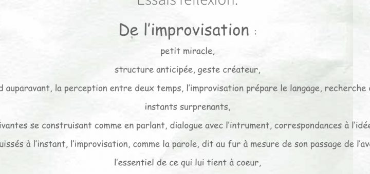Improvisation chant et piano sur des poèmes: Improvisation chant et piano, Carole Rey, soprano, Daniel Thomas, piano. Sur une poème de Daniel Thomas: « Le ciel percé d’entre les parcelles grises clair » Le...