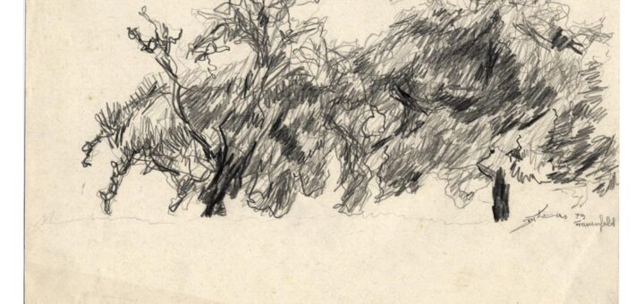 Deux arbres, dessin au crayon, 1979, Daniel Thomas Un petit voyage: Promenade, extrait sonore mp3, composition de Daniel Thomas aux orgues de Montheron. Pièces pour orgue, eaux, promenade au milieu de l’eau, pour orgue...