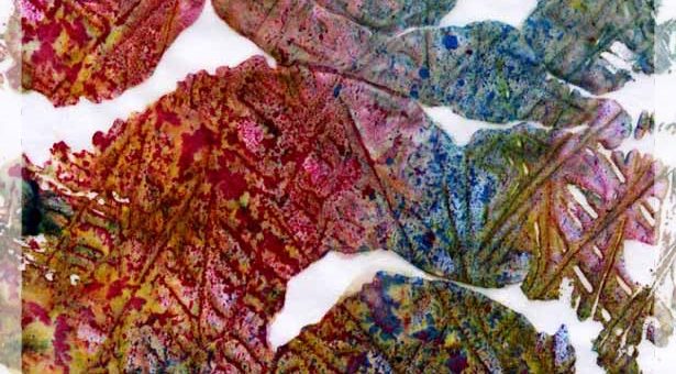 Monotype à l’aquarelle: sur la colline, jeux de feuilles, branchages, danses de formes, et passages de la lumière!